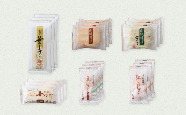 極上笹かまぼこ :3枚 白謙揚げ :3枚 白謙揚げ やさい入り :3枚 チーズ入 ミニ笹かまぼこ :3枚 ミニ白謙揚げ 真いか入り :3枚 ミニ白謙揚げ 紅しょうが入り:3枚 |